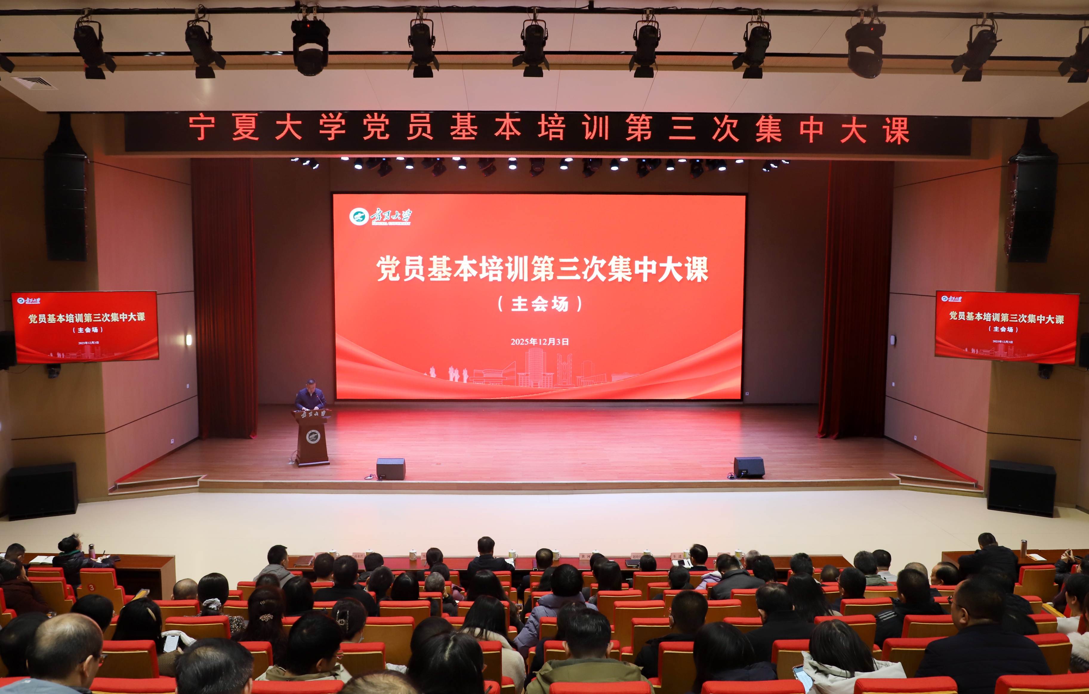 【beat365唯一官方网站新闻中心讯 冯禹君/文 王文娣、各单位/图】为进一步强化全校党员理论水平和党性修养,切实提高党员队伍素质能力,按照自治区教育工委有关工作要求,12月3日,beat365官网组织全校党员开展党员基本培训第三次集中大课,学习中央党校(国家行政学院)副校长(副院长)谢春涛讲授的“中国共产党与中华民族伟大复兴”视频课程。全体在校校领导和全体教职工党员、离退休党员、学生党员在笃行楼1楼报告厅主会场和其他14个分会场同步参加大课学习。校党委副书记张桓主持培训会。谢春涛从夺取新民主主义革命伟大胜利、完成社会主义革命和推进社会主义建设、进行改革开放和社会主义现代化建设、开创中国特色社会主义新时代四个历史阶段,回顾了中国共产党在百余年奋斗中团结带领中华民族走向伟大复兴的光辉历程和历史经验,系统阐释了党的十八大以来,在以习近平同志为核心的党中央坚强领导下,党和国家事业取得历史性成就、发生历史性变革,详细解读了以中国式现...