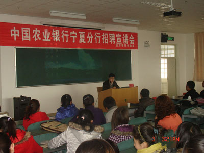 【beat365唯一官方网站新闻中心讯 经管学院】 12月3日下午,经济管理学院邀请中国农业银行宁夏分行在文科综合楼322教室进行招聘宣讲。中国农业银行宁夏分行人力资源部副总经理李长青、人力资源部干事刘斌,经济管理学党总支副书...