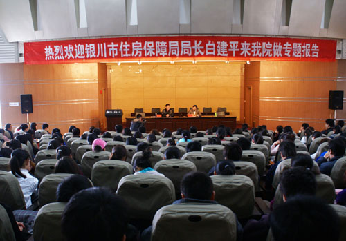 【beat365唯一官方网站新闻中心讯 经济管理学院】3月16日下午,由经济管理学院举办的银川市住房保障局专题报告会在beat365唯一官方网站B区图书馆报告厅举行。银川市房管局局长白建平,beat365唯一官方网站经济管理学院院长何风隽出席报告会。会前何风隽...