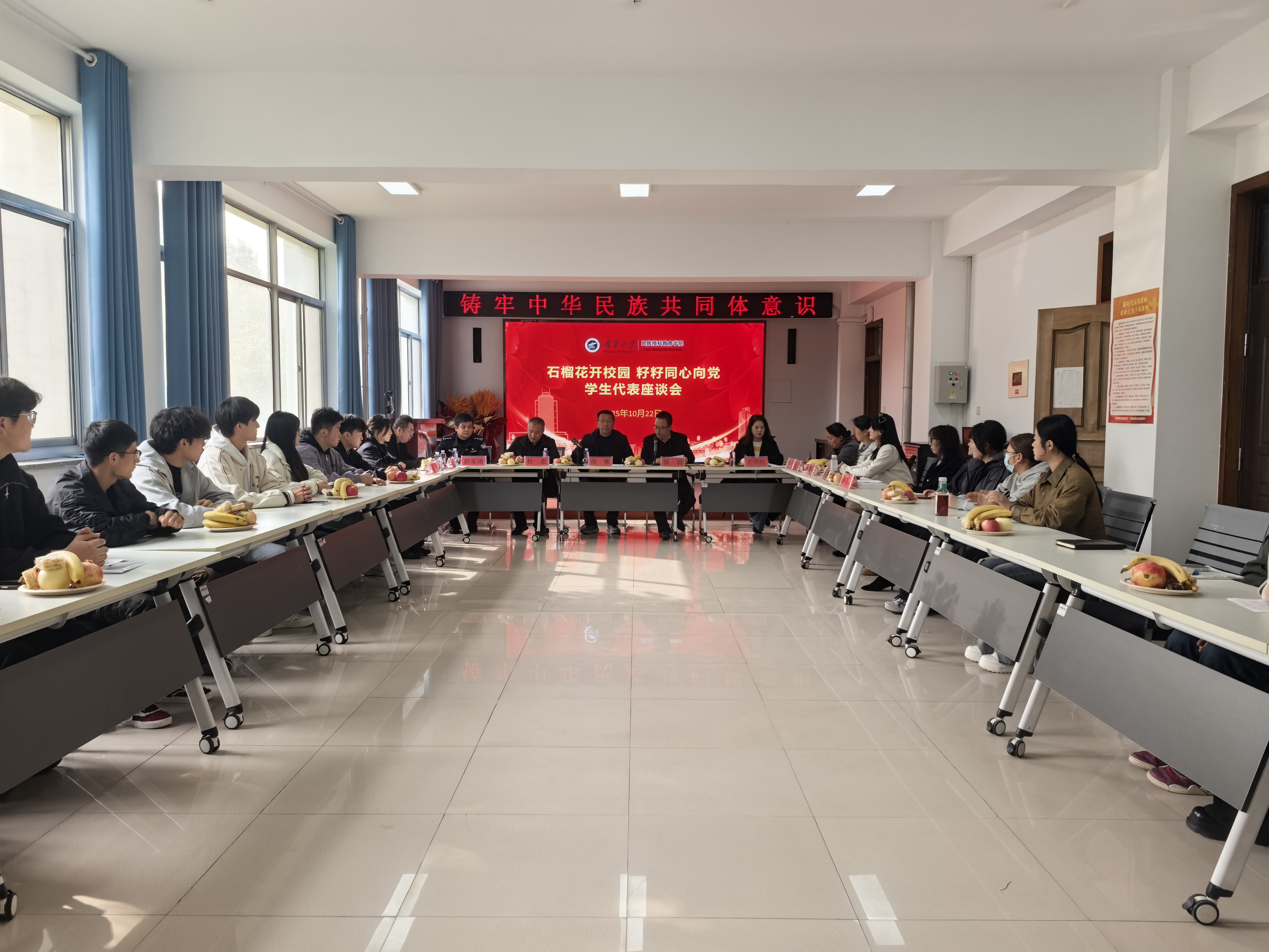 【beat365唯一官方网站新闻中心讯 民族预科教育学院】为深入铸牢中华民族共同体意识,搭建师生与多方交流平台,民族预科教育学院于10月22日召开 “石榴花开校园 籽籽同心向党” 学生代表座谈会。学院党总支书记倪彬,银川市金凤区公安分局政保大队队长杜忠、政保支队于春红、长城路派出所副所长胡家琦及学院教师代表、全体辅导员和学生代表共同参会,会议由党总支副书记郭利主持。学生代表们结合自身学习生活与成长感悟,围绕“民族团结”“集体融入”“学业规划”等主题进行分享。他们讲述了在校园中与不同民族同学互帮互助的温暖故事,也提出了学习生活中遇到的困惑与需求,充分展现了新时代预科学生积极向上的精神风貌与对民族团结的深刻认知。优秀班主任代表谢静雯老师从教育教学与学生培养角度出发,希望同学们尽快适应新的环境,迅速地投入到新的学习生活中去,结合教学案例,鼓励学生们以包容开放的心态拥抱多元文化,在互助学习中共同进步,为铸牢中华民族共同...
