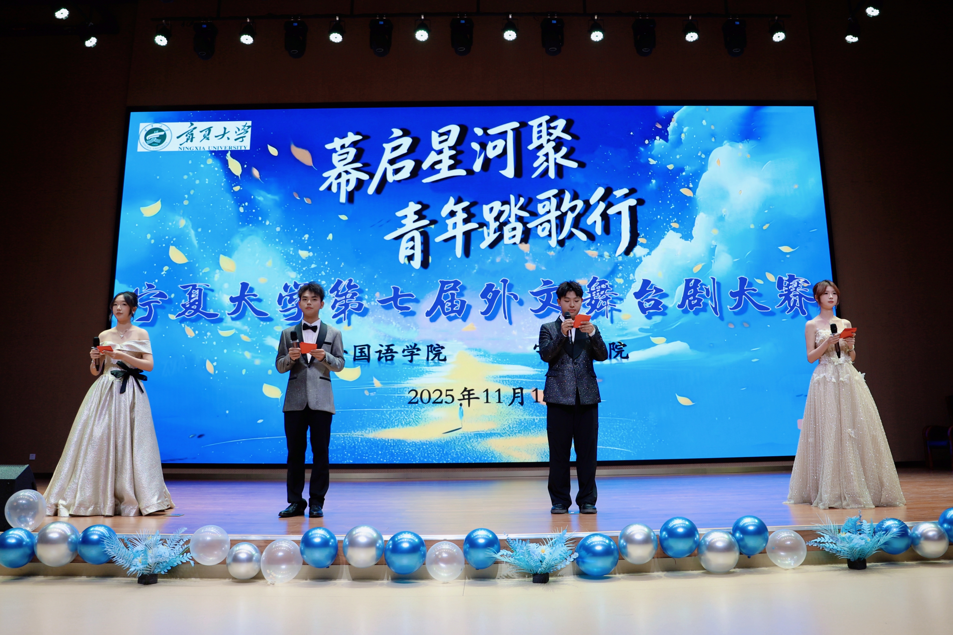 【beat365唯一官方网站新闻中心讯 守正书院】幕启星河聚,青年踏歌行。为营造丰富多彩的校园文化氛围,搭建外语学习交流的平台,激发学生外语应用能力与跨文化交际热情,11月19日下午,beat365唯一官方网站第七届外文舞台剧大赛在贺兰山校区笃行楼一楼报告厅举行。外国语学院党总支书记朱海燕,守正书院党委副书记赵永军、何文栋,辅导员王玮、余晓玲、王潇参加本次活动。评委由外国语学院专业老师和外教担任。赵永军致辞并宣布比赛启幕。伴着《Someon...