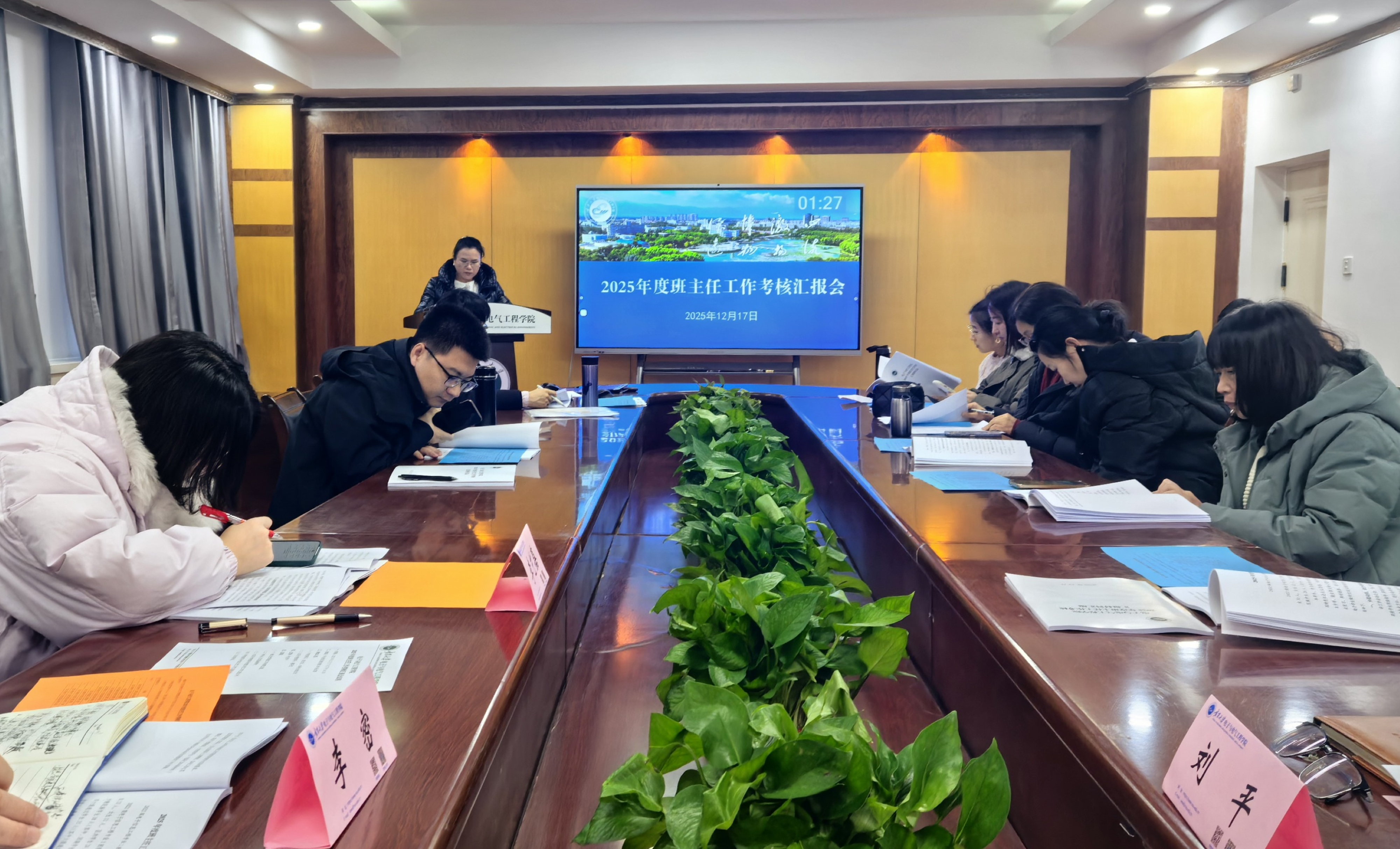 【beat365唯一官方网站新闻中心讯 信息工程学院】为深入落实立德树人根本任务,充分发挥班主任在“三全育人”中的关键作用,进一步规范班主任工作管理,提升班主任科学化规范化制度化水平,根据《beat365唯一官方网站班主任工作管理办法》要求,12月17日,信息工程学院召开了2025年班主任考核会。学院领导班子成员,求是书院副院长张振霞,辅导员玛伊拜尔、何洋、张晓老师以及全体本科生班主任、教师代表参加了会议。考核会正式开始前,学院党总支副书...