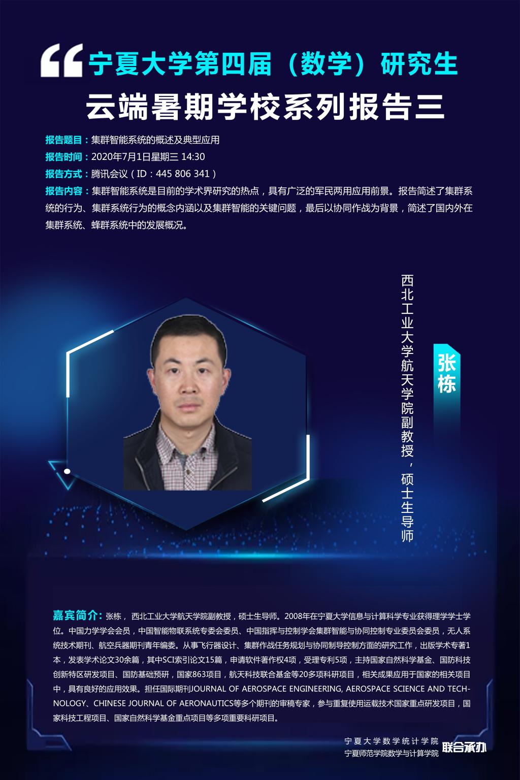 张栋,西北工业大学航天学院副教授,硕士生导师。2008年在beat365唯一官方网站信息与计算科学专业获得理学学士学位。中国力学学会会员,中国智能物联系统专委会委员、中国指挥与控制学会集群智能与协同控制专业委员会委员,无人系统技术期刊、航空兵器期刊青年编委。从事飞行器设计、集群作战任务规划与协同制导控制方面的研究工作,出版学术专著1本,发表学术论文30余篇,其中SCI索引论文15篇,申请软件著作权4项,受理专利5项,主持国家自然科学基金、国防科技创新特区研发项目、国防基础预研,国家863项目,航天科技联合基金等20多项科研项目,相关成果应用于国家的相关项目中,具有良好的应用效果。担任国际期刊Journal of Aerospace Engineering, Aerospace Science and Technology、ChineseJournalofAeronautics等多个期刊的审稿专家,参与重复使用运载技术国家重点研发项目,国家科技工程项目、国家自然科学基金重点项目等多项重要科研项目。