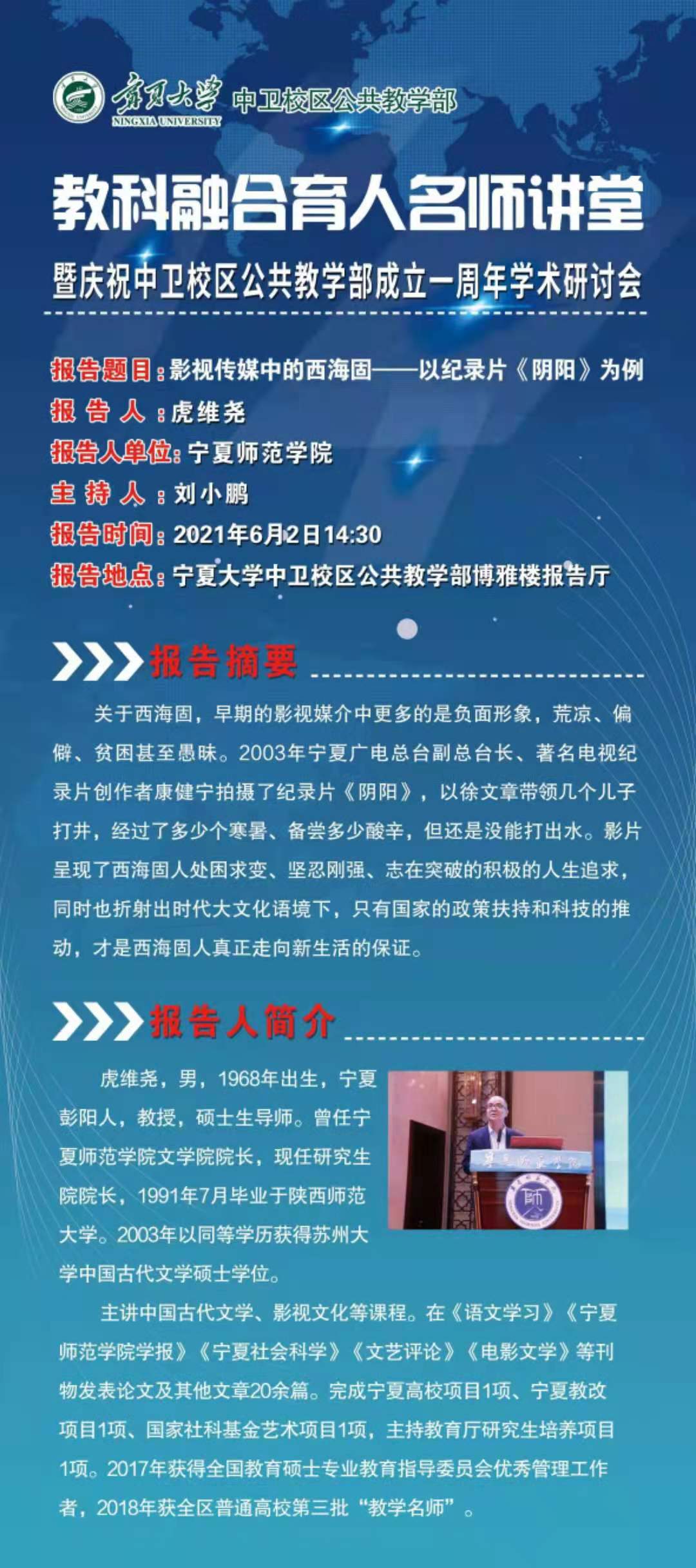 报告地点:beat365唯一官方网站中卫校区公共教学部博雅楼报告厅