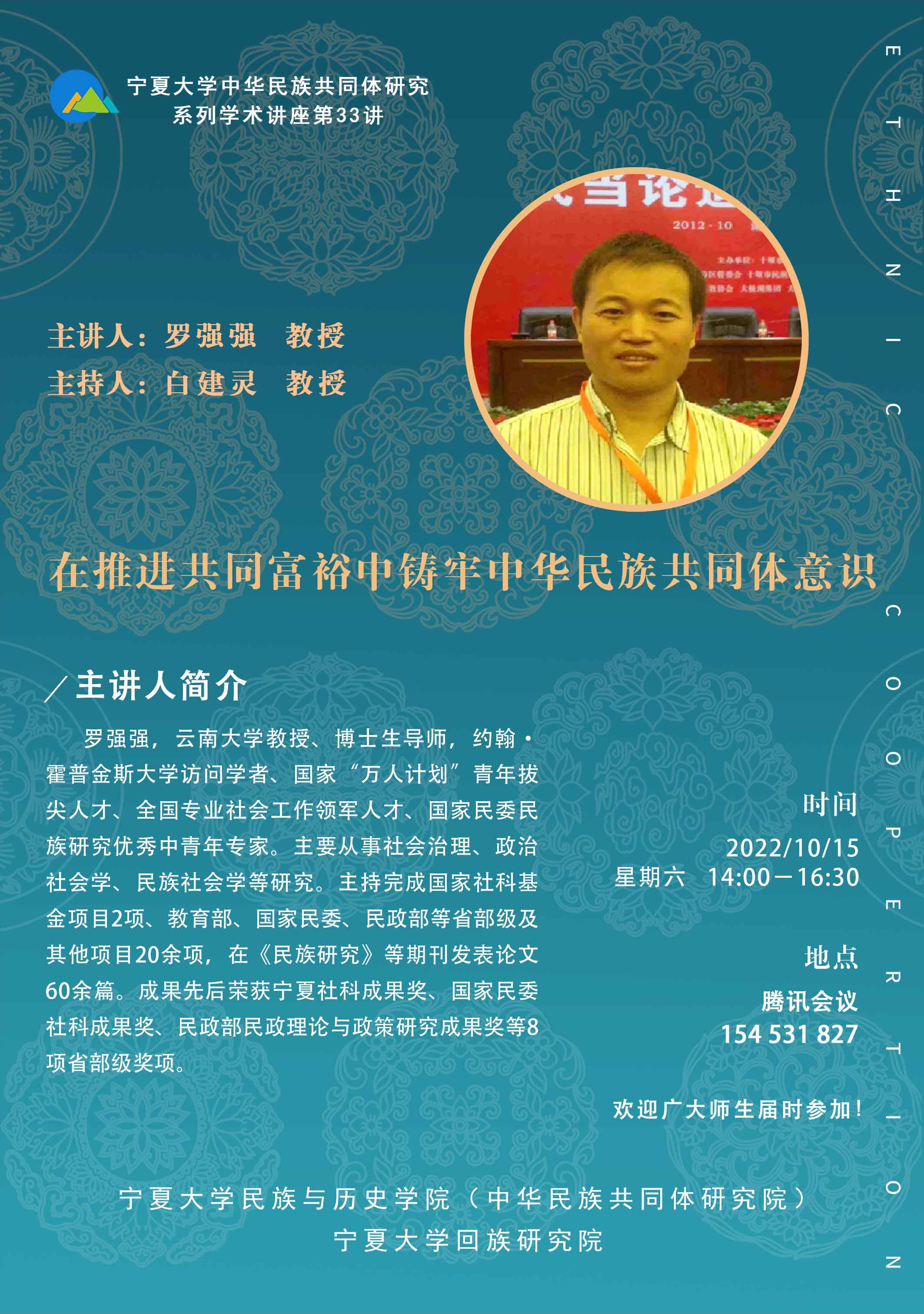 罗强强,云南大学教授、博士生导师,约翰•霍普金斯大学访问学者、国家“万人计划”青年拔尖人才、全国专业社会工作领军人才、国家民委民族研究优秀中青年专家。主要从事社会治理、政治社会学、民族社会学等研究。主持完成国家社科基金项目2项、教育部、国家民委、民政部等省部级及其他项目20余项,在《民族研究》等期刊发表论文60余篇。成果先后荣获宁夏社科成果奖、国家民委社科成果奖、民政部民政理论与政策研究成果奖等8项省部级奖项。