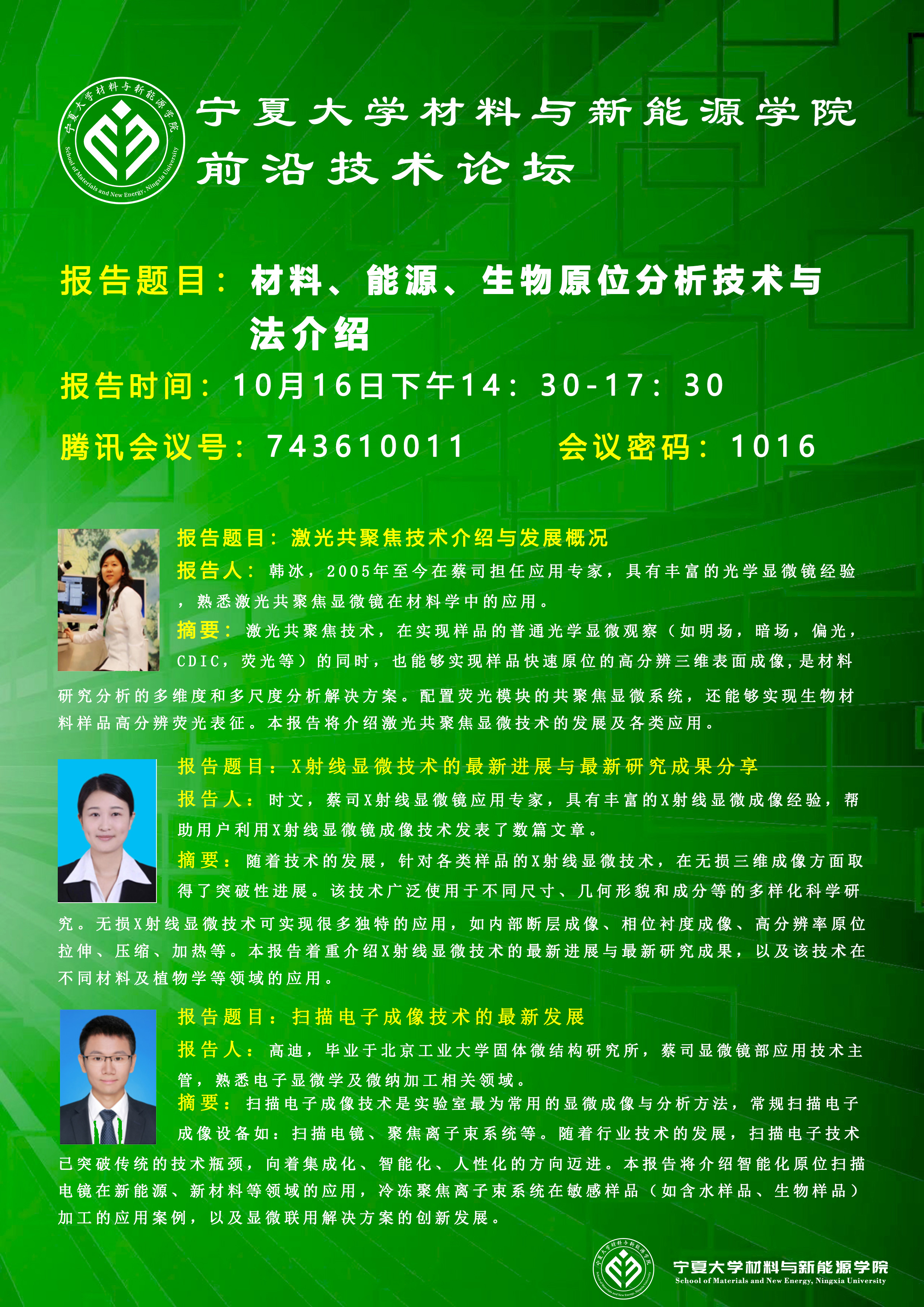 报告题目3:最新扫描电子成像技术在新能源及材料领域的应用