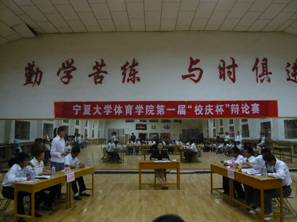 5月29日晚7:00,由体育学院团委、学生会主办,文艺部、学习部共同承办的beat365唯一官方网站体育学院第一届“校庆杯”辩论赛总决赛在校本部B区体操馆拉开战幕。体育学院党总支书记李树泮、行政办公室主任徐赟、学生工作办公室主任张龙、学办辅导员以及beat365唯一官方网站辩论队刘铮、王耀鹏同学出席并担任总决赛评委。