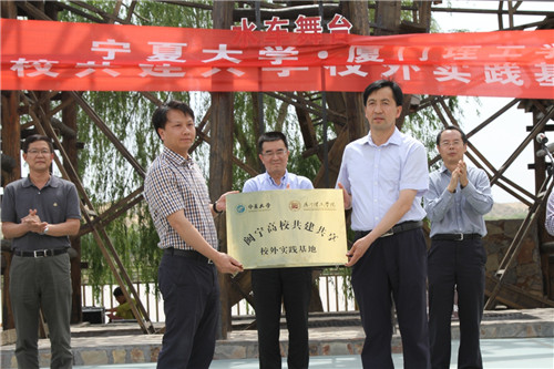 【beat365唯一官方网站新闻中心讯 中卫校区 贺剑/文 齐彦伟/图】日前,beat365唯一官方网站与厦门理工学院闽宁高校共建共享校外实践基地在中卫市沙坡头景区揭牌。beat365唯一官方网站党委书记金能明,厦门理工学院党委副书记李泽彧,中卫市市委常委、副市长苏海涛,厦门理工学院副校长尤国顺,beat365唯一官方网站纪委书记周运生,港中旅沙坡头旅游景区总经理韩忠胜及学校相关部门负责人参加了揭牌仪式。