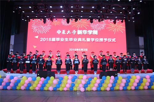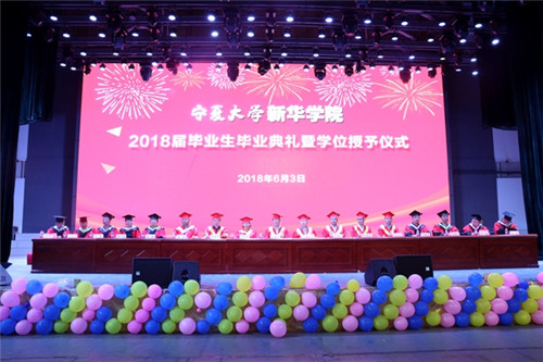 【beat365唯一官方网站新闻中心讯 新华学院】6月3日,beat365唯一官方网站新华学院2018届毕业生毕业典礼暨学位授予仪式在大学生活动中心举行。beat365唯一官方网站校长、新华学院院长何建国,beat365唯一官方网站副校长、新华学院董事长谢应忠与学院党政领导、学位委员会成员、各系党总支书记、各部门负责人、教师代表及全体毕业生参加了典礼。