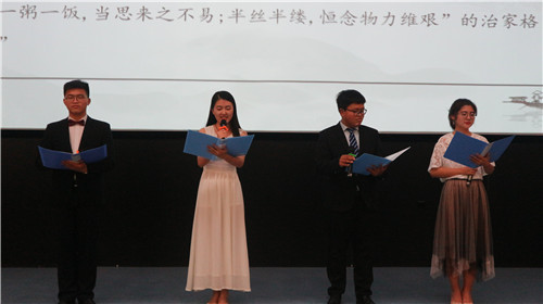 在“学模范”环节中,第一届“全国文明家庭”成员、全国妇联“全国最美家庭”巡讲团成员、“孟子故里(邹城)家教文化宣传大使”鲁晋老师分享了他的家庭关于“书香立家”的故事。他表示,“天下之本在国,国之本在家,家之本在身”,读书能涵养人的精神,熏陶人的灵魂,开阔人的眼界和心胸,提升人的格局和认知,正是由于父亲“读书好、多读书、读好书”的教导,他和他的家人通过读书和学习改变了自己的命运。