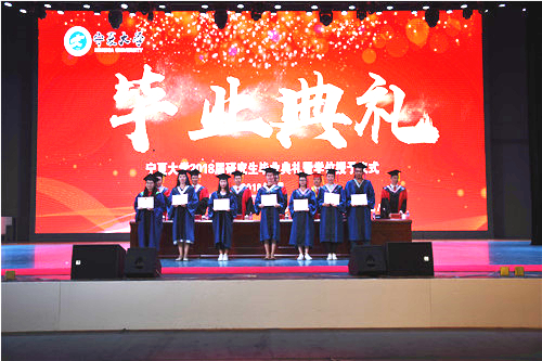校领导为816位硕士学位获得者颁发学位证书,扶正流苏。