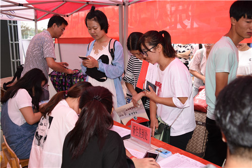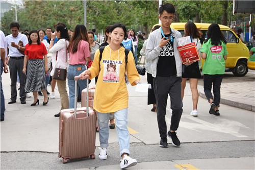 校领导一行来到各学院的新生报到服务咨询点,耐心询问报到情况,详细了解报到流程和所需时间,阅览了各学院的迎新服务宣传单及新生指南,并与服务咨询点附近的学生与家长亲切交谈,对各学院给予新生的关怀和学生的创意给予了极大的肯定。