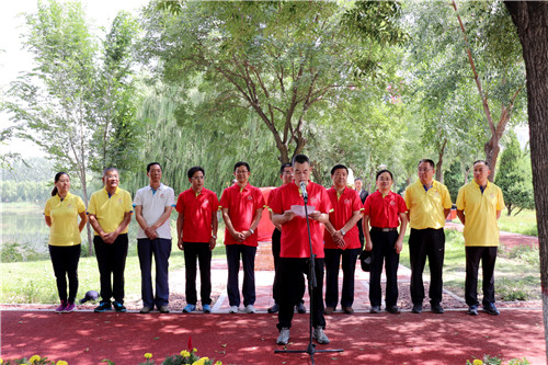 何建国在致辞中指出,2011年,为在学校形成“健康生活、积极工作”的良好氛围,学校将金波湖畔的路起名为“健康之路”,并加强了基础设施建设。该条路段成为了全校师生乃至周边居民休闲健身的良好场所。今年,为进一步打造这一休闲健身场所,为师生营造更加和谐优美的工作学习环境,学校又筹措资金,对“健康之路”进行了建设,寓意“健康从运动开始”。该路段全长1958.915米,又与学校成立日1958年9月15日相对应。现在的“健康之路”,垂柳拂风、绿水环绕、小径通幽,希望师生们能在这样的环境中,在学习工作之余踏上健康之路,收获愉悦、收获健康。