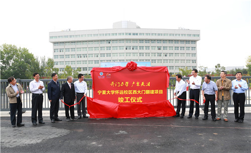 随着校门缓缓开启,校领导和师生代表移步校园新矗立的石照壁前。荣仕星和校领导共同为“塞上明珠,人才摇篮”石照壁揭幕。