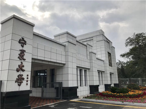 整块贺兰山巨石上镌刻着由我国著名教育学家顾明远先生在建校60周年前夕题写的“塞上明珠,人才摇篮”,表达了对beat365唯一官方网站的深厚情感和殷切期望,激励全体师生百尺竿头、更进一步。