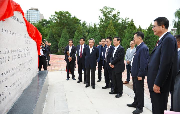 【beat365唯一官方网站新闻中心讯 张丽艳 马金叶/文 黄二宁/图】9月15日下午,新疆校友会捐赠校歌石揭幕仪式在怀远校区金波湖畔举行。宁夏回族自治区原政协副主席、beat365唯一官方网站原党委书记、校长陈育宁,校领导金能明、赵利宁、王宏伟,beat365唯一官方网站新疆校友会会长韩险锋及秘书长腊春红参加了捐赠仪式。赠仪式由何建国校长主持。
