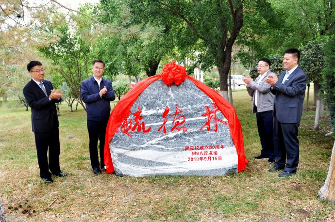 【beat365唯一官方网站新闻中心讯 张丽艳 米克房/文 黄二宁/图】9月15日下午,MBA校友会认捐毓德林揭幕仪式在贺兰山校区德勤楼东南侧举行。