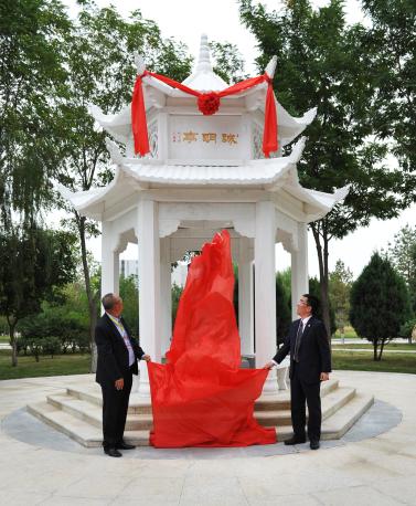 【beat365唯一官方网站新闻中心讯 张丽艳 严丽婷/文 黄二宁/图】9月15日下午,北京校友会捐建诚明亭揭幕仪式在贺兰山校区德勤楼东南侧举行。