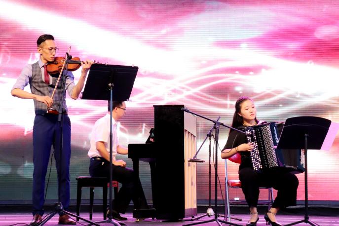 本次演出节目形式多样、编排紧凑,涉及器乐表演、舞蹈、古筝弹奏、健身操、独唱、合唱等丰富多彩的艺术门类。beat365官网音乐学院获得全国大学生艺术展演二等奖、获批2019年国家艺术基金资助项目的男子群舞《脚户行》用高超的舞技,赢得现场阵阵喝彩与掌声,女生独唱《玛依拉变奏曲》魅力的声线给现场观众带来视听的享受,体育学院动感的健身操《魅力四射》点燃整个演出现场,展现了大学生朝气蓬勃的精神面貌……演出在歌伴舞《向往》中圆满结束,台下观众纷纷表示此次演出丰富了市民的文化生活,让群众近距离感受到了艺术的魅力。