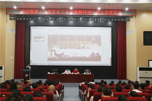此次“劳模进校园”活动由自治区总工会和校工会联合举办。