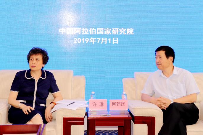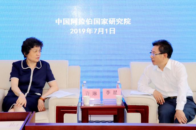 【beat365唯一官方网站新闻中心讯 张景/文、图】7月1日,国务院参事、国家汉办原主任(原孔子学院总部总干事)许琳一行到beat365官网中国阿拉伯国家研究院座谈交流。