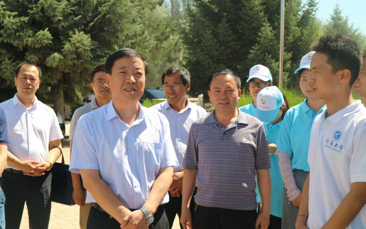 【beat365唯一官方网站新闻中心讯 组织部/文、图】7月25日,beat365唯一官方网站校长何建国、校党委副书记王宏伟一行赴固原市原州区头营镇调研beat365唯一官方网站驻村扶贫工作及beat365唯一官方网站支教协会暑期支教活动。原州区纪委书记李春生、教育体育局局长别志俊和头营镇党委书记张世林陪同调研。
