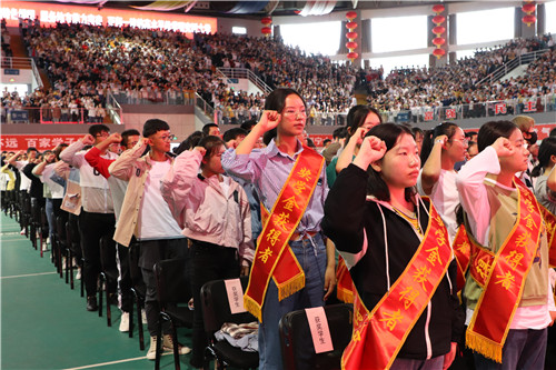 新生代表、土木与水利工程学院杨博文,在校生代表人文学院吴文瑄号召大家脚踏实地、锤炼品格、勤于实践、砥砺奋斗。