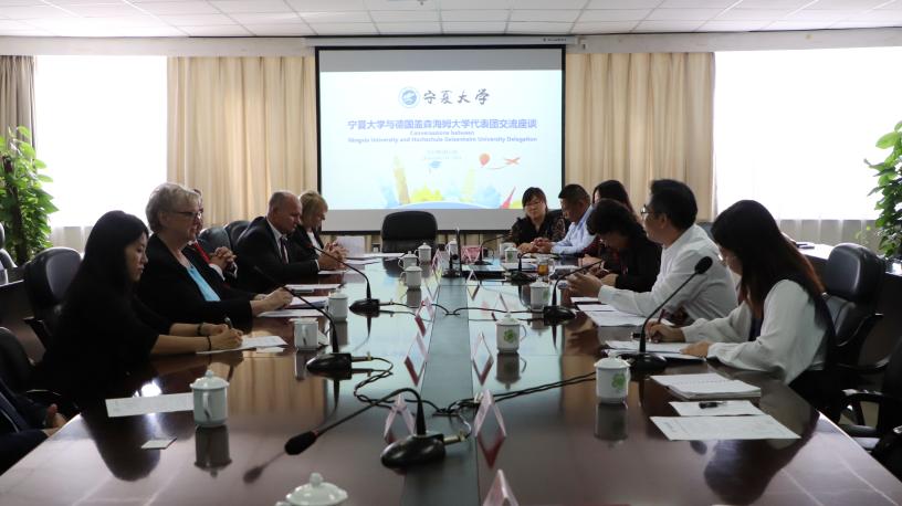【beat365唯一官方网站新闻中心讯苏雯/文、图】9月16日,德国盖森海姆大学代表团一行来校交流座谈并签署《中国beat365唯一官方网站与德国盖森海姆大学合作备忘录》。副校长史金龙、自治区外事办欧非处处长李庆、副处长高剑参加座谈会。会议由对外合作交流处处长高桂英主持。