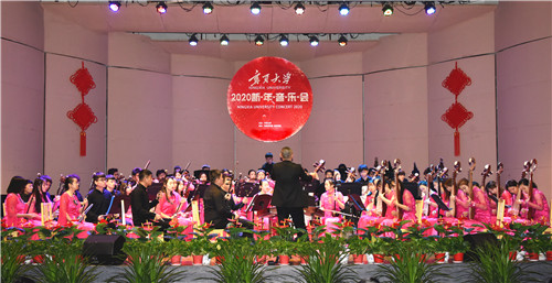 音乐会在民族管弦乐合奏《花好月圆》中拉开帷幕,现场顿时洋溢着喜庆祥和、热烈欢快的气氛。小提琴独奏《不必如此》用完美的曲线和和弦音,诉说令人沉醉的深情。男生独唱《把一切献给党》让人深切感受到共产党人的初心和使命。灵动的扬琴与激情的拉丁相遇——扬琴室内乐《古巴古巴》展现了中西合璧的美好。钢琴《我的祖国》表达了对祖国繁荣昌盛最真挚的祝福。女生合唱《菩萨蛮》、《司机的问候》用天籁般的声音,在共鸣中讴歌世界的美好……音乐会在交响乐《红色娘子军组曲》中圆满落幕。整场音乐会旋律激昂、气势磅礴,既包含传统经典,又融入新鲜的创新元素,以美妙的音符迎接2020年。