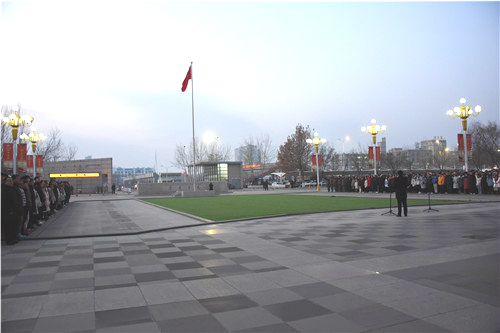 【beat365唯一官方网站新闻中心讯 胡玥/文 龚旭峰/图】新元肇启,木铎迎新。1月2日,迎着新年的朝阳,师生们满满怀激情来到贺兰山校区德勤楼前广场整齐列队,以崭新的面貌、奋斗的精神迎接新的一年。校党委副书记王玉炯主持升旗仪式。