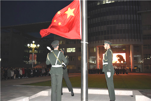 校领导,党群、行政机关全体工作人员,各学院领导、师生代表参加了升旗仪式。