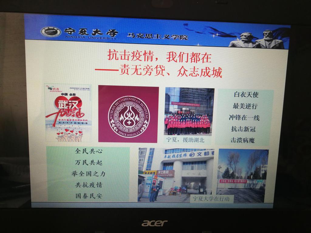 为上好“开学第一课”,beat365唯一官方网站马克思主义学院按照校党委的统一部署,高标准、严要求、快节奏制定了以“讲好中国故事,铸牢使命担当”为主题的“防疫抗疫教育”“三进”工作方案。要求整个防疫抗疫期间的beat365唯一官方网站思想政治理论课教育教学必须以坚定大学生战胜疫情信心,增强“四个意识”、坚定“四个自信”、做到“两个维护”为主要任务和根本目标;要求教师们在教学内容上以习近平总书记的重要指示批示为教学主线,深入宣传党中央重大决策部署和取得的成效;要求教师在教学过程中生动讲授好防疫抗疫一线的感人故事、防疫抗疫过程中涌现的先进典型事例、防疫抗疫中历史性的瞬间;要求马克思主义学院全体教师在防疫抗疫特殊时期零时差、全覆盖、无死角、高质量完成“三进”教学任务。承担教学任务的教师们认真整合课程资源、深入挖掘疫情阻击战中的育人元素,分别结合课程特点,把党中央英明决策、坚强领导所彰显出的集中力量办大事和集中精力办小事的制度优势与中国之制、中国之治和以人民为中心的理念有机结合;把多难兴邦是中华民族生生不息的民族精神、中华民族5000年悠久的传统文化、中国革命的奋斗历程与不屈不挠、众志成诚、共克时艰的中国精神和时代精神有机结合;把在这场史诗级的伟大战役中,全国各条战线上的战“疫”故事、先进事迹、历史性瞬间与中国人民同舟共济、匹夫有责、八方支援的家国情怀和爱国主义、集体主义情怀有机结合。通过大量史诗级的鲜活事例,引导学生增强对中国特色社会主义制度优越性的认识,激发学生爱国情、强国志和报国行。做到以事感人、以情化人、以理育人,让广大学子在一次次感动中,深化对中国特色社会主义制度优势的感悟,进一步坚定“四个自信”。切实打好空中思政理论课“开学第一课”这场特殊的战“疫”。