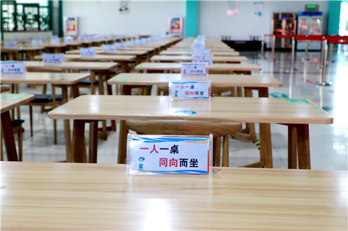 “学校早做准备,储备了相对充足的物资。”后勤集团副总经理马彦峰说。在饮食保障方面,学校按照错时错峰的原则,延长的供餐时间,早晨六点半到中午一点半,是早餐和午餐时间,下午一点半开始至四点钟,是餐厅消毒时间,从四点到晚上七点半,是晚餐时间,学生进餐厅前要进行体温检测,洗手消毒,餐厅里设置单人单桌同向就坐,学校还在学生返校前倡导自备餐具,将餐食带到宿舍,降低安全隐患。餐厅进出口分开,单向通行,每个餐厅设置两个引导员,提醒学生正确就餐。