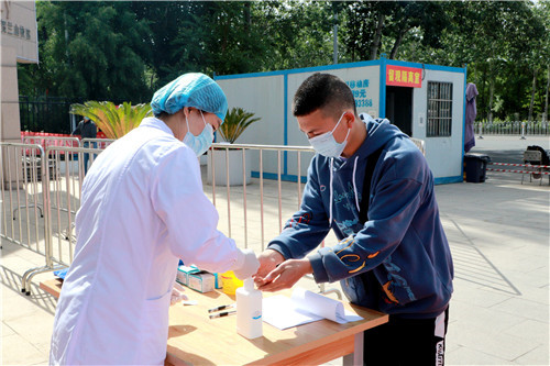 早上九时,在怀远校区西门口,银川籍毕业年级返校学生陆续进入校园。校园西门是返校学生的专用通道,在校门口设立了检测点和留观室。经过信息登记、体温监测、领取健康包等环节后,返校学生由辅导员带到宿舍区域。宿管工作人员对学生的行李和鞋底进行消毒,对学生信息进行核对,体温检测后,由学生刷卡进入宿舍。“提前几天就对返校学生的宿舍进行全面消毒并且开窗通风,确保学生住宿安全。”怀远校区10号楼宿管工作人员说。