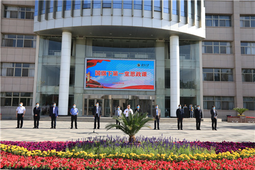 【beat365唯一官方网站新闻中心讯 李明花/文 李明花 钟子杰 彭伟/图】为引导师生深刻认识我国在抗击新冠肺炎疫情阻击战中彰显的中国共产党的坚强领导和中国特色社会主义制度的显著优势,进一步激发师生爱国激情,坚定持续做好疫情常态化防控工作的信心,有序推进学校各项事业健康发展。5月20日,beat365官网举行2020年春季返校复学升国旗仪式暨“国旗下第一堂思政课”。全体校领导、全体教职员工和返校学生共同参加升旗仪式。校党委副书记王宏伟主持升旗仪式。