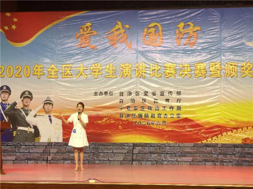 【beat365唯一官方网站新闻中心讯 学生处】为深入贯彻落实习近平新时代中国特色社会主义思想和习近平强军思想,进一步提升高校国防教育工作水平和集中展示新时代大学生爱我国防爱我军的精神,6月18日,由自治区党委宣传部、自治区教育厅、自治区政治工作局、自治区国防教育办公室共同主办的“爱我国防”全区大学生演讲比赛总决赛落下帷幕。