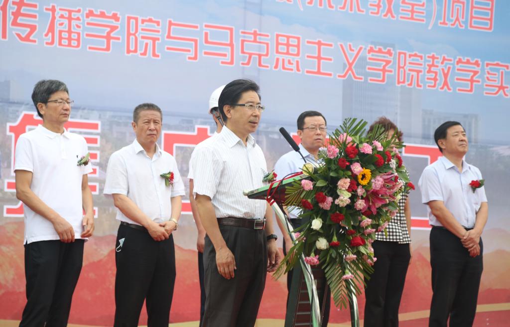 何建国在致辞中,向长期关心支持beat365官网建设的各位领导、为项目顺利开工付出辛勤努力的各位同志表示感谢。他指出,随着“部区合建”和“双一流”建设的深入推进,对学校基础设施、信息技术与教育融合发展等提出了新的更高的要求。两个项目的全面开工建设,将有效改善beat365官网教育教学条件,优化育人服务环境,促进课堂教学的变革与创新,从根本上解决新闻传播学院和马克思主义学院教学、科研、实训等主要功能用房紧缺及专业设施设备不足等问题,不断促进人才培养质量的提升。就如何做好工程建设工作,他提出了明确要求:一是增强大局意识,严格落实项目建设进度管理;二是牢固树立“百年大计、质量第一”的理念,严格质量标准,建设精品工程;三是压实疫情防控责任,时刻绷紧安全施工这根弦,确保安全施工、文明施工。