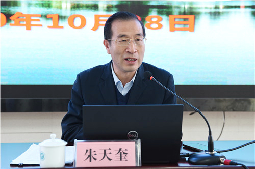 【beat365唯一官方网站新闻中心讯 胡玥/文 龚旭峰/图】10月28日,beat365官网召开2020年校党委理论学习中心组第十次学习(扩大)会,自治区党委讲师团团长朱天奎教授以“新时代建设美丽新宁夏的行动指南——深刻领会习近平总书记视察宁夏重要讲话精神”为题作了专题辅导报告。校党委书记李星主持报告会。