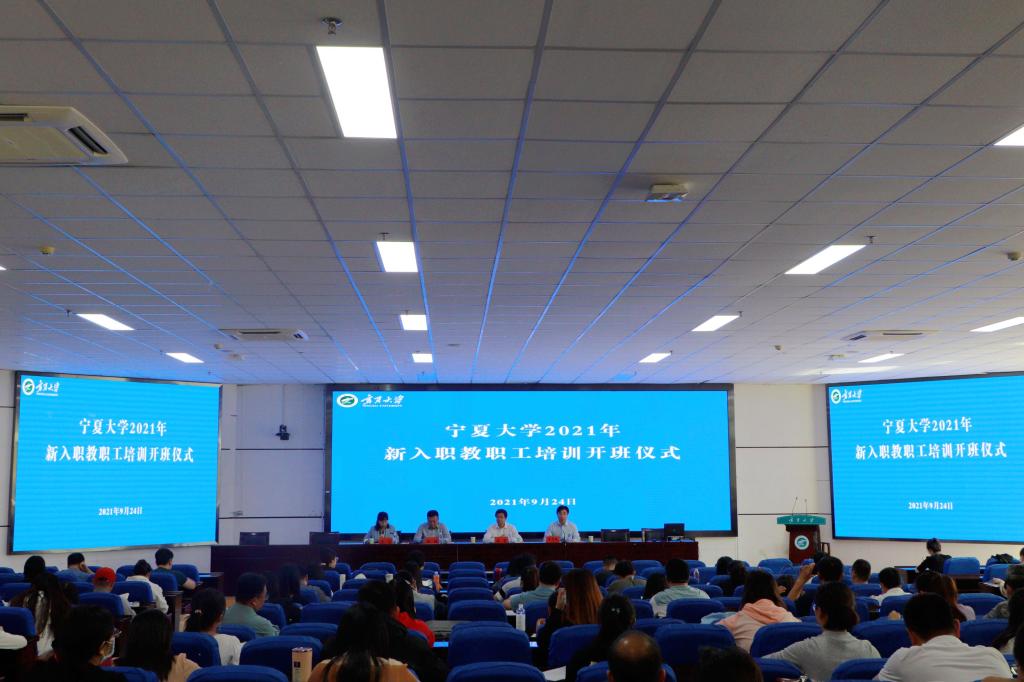 【beat365唯一官方网站新闻中心讯 教师教学发展中心/文 王文娣/图】9月24日,beat365官网2021年新入职教职工培训开班仪式在贺兰山校区文荟楼报告厅举行。校党委常委、副校长周震出席会议,人事处处长李学斌主持开班仪式。