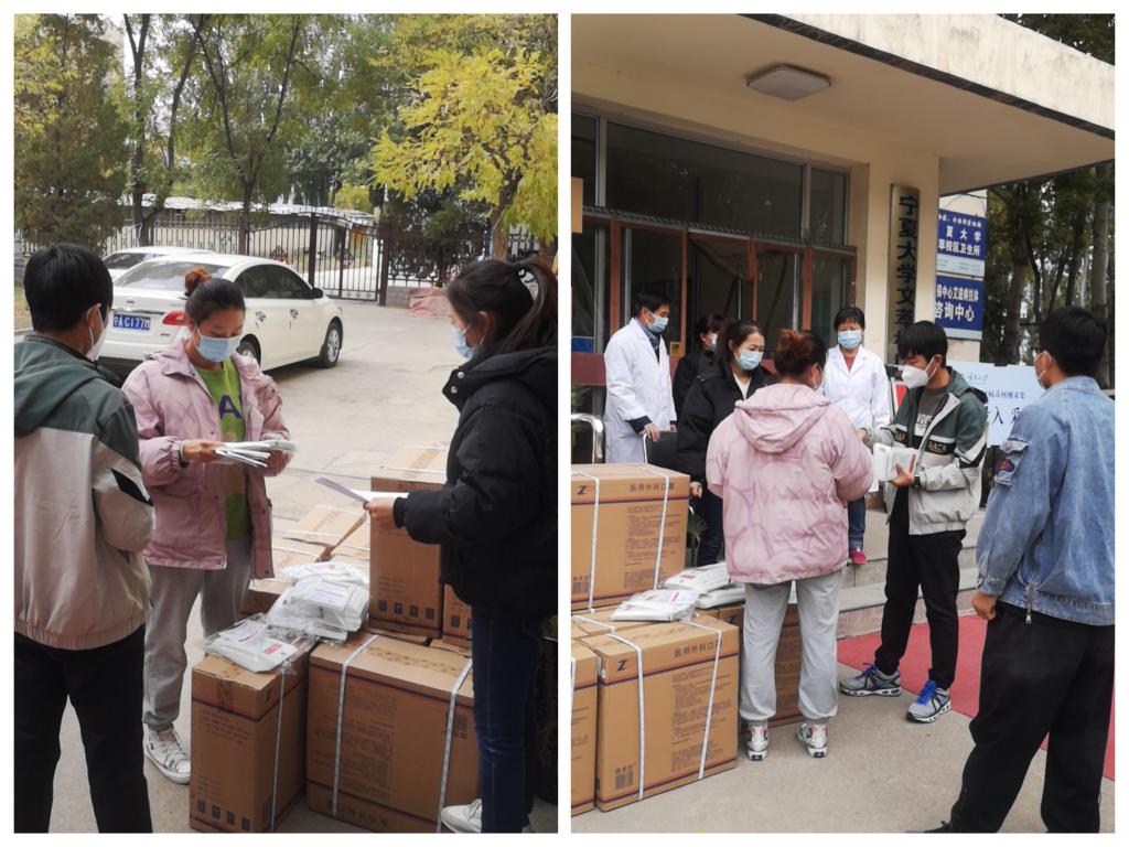 医疗保健服务中心迅速反应,多方联系储备防控物资,严格把控物资的购进、验收、发放记录等环节。根据学校疫情防控要求,10月23日至24日为全体学生及在校在岗的教职工进行全面核酸检测;10月22日凌晨,医保中心工作人员排队2小时领取政府分配学校进行核酸检测的相关物资;10月23日后勤保障部全员出动,紧锣密鼓地投入到服务广大师生核酸检测的工作之中。在全体宁大后勤人的共同坚守下,本着“应检尽检”的原则,历经16个小时有序完成18911份核酸采样。