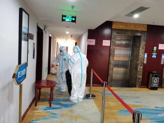 校园物业管理服务中心教职工自10月20日以来奋战在学校疫情防控一线,在做好对学生宿舍楼、食堂等重点区域进行定时定点消毒的同时,对被隔离学生住所、家属楼,校区大门和教学办公楼宇及全校电梯每日早晚进行无死角消毒。按照中卫校区新冠疫情防控预案对校区10栋学生公寓、2栋教师公寓、2个学生餐厅及教学楼、学生浴室等公共区域定时进行严密消毒消杀工作。在23日的各校区核酸检测现场,15名工作人员身着防护服坚守在一线,组织、协调在场师生有序、安全采样,为防止二次污染,待采样工作结束后及时清理废弃医疗器械,并对现场再次进行卫生消杀。