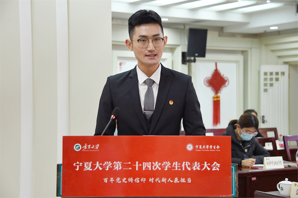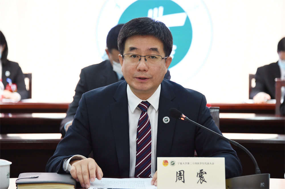 周震代表学校党委、行政向大会的召开表示热烈的祝贺。他表示,beat365唯一官方网站第二十四次学生代表大会的召开是学校广大学生政治生活、学校建设与发展过程中的一件大事。一年来,在学校党委的坚强领导下、在学校团委正确指导下,beat365唯一官方网站学生会在深化学生会组织改革、引领青年思想、服务学生成长、繁荣校园文化、维护学生权益、参与疫情防控、推动学校“双一流”建设和学校育人工作以及助力宁夏地区经济社会发展等方面做出了重要贡献。