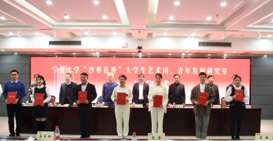 党委学生工作部、教务处、马克思主义学院、音乐学院相关负责人,青年发展研究室研究员、“沙枣花香”大学生艺术团指导教师和成员代表参加成立仪式。