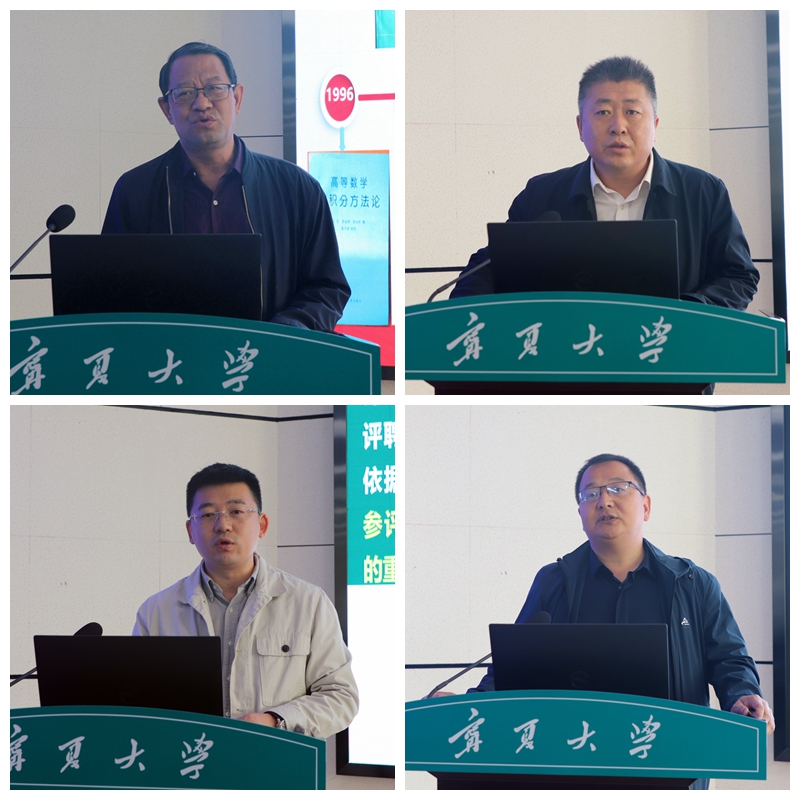 会上,物理与电子电气工程学院教研室主任汤全武教授、马克思主义学院院长范映渊教授、化学化工学院副院长任永胜教授、农学院动物科学系主任伏兵哲教授分别以《以生为本持之以恒 带领团队建设一流教材》、《抓机遇寻突破 开创马工程教材编写工作新局面》、《专业、课程与教材一体化建设与改革的一些感悟》、《牧草与草坪草育种学实验实习教材编写体会与思考》为题作了交流发言。