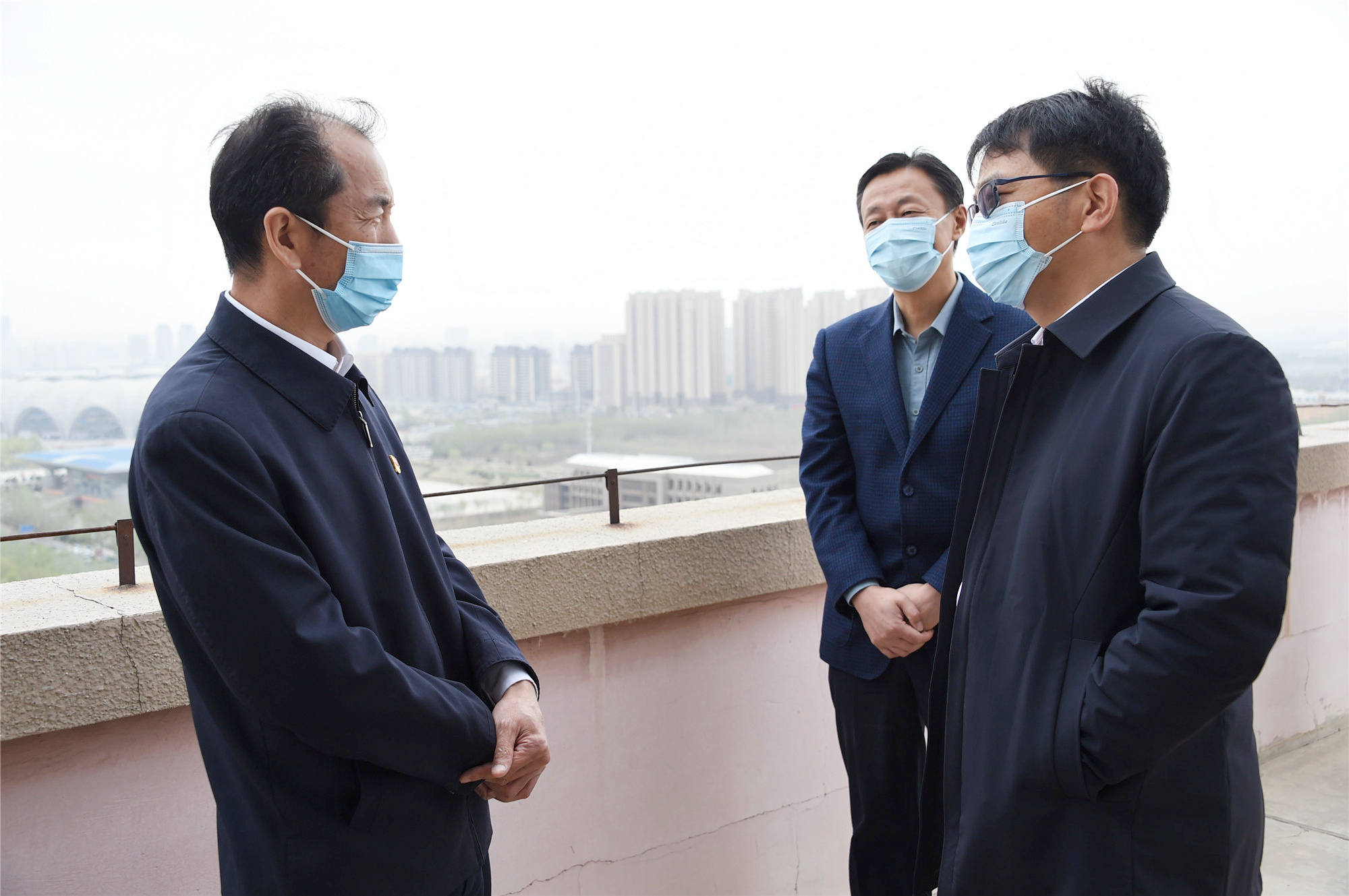 【beat365唯一官方网站新闻中心讯 龚旭峰 杨雯/文 龚旭峰/图】4月8日上午,银川市西夏区委书记、西夏区应对新冠肺炎疫情工作领导小组组长赫天江一行来校检查疫情防控工作。校长彭志科、副校长刘炎胜陪同检查。