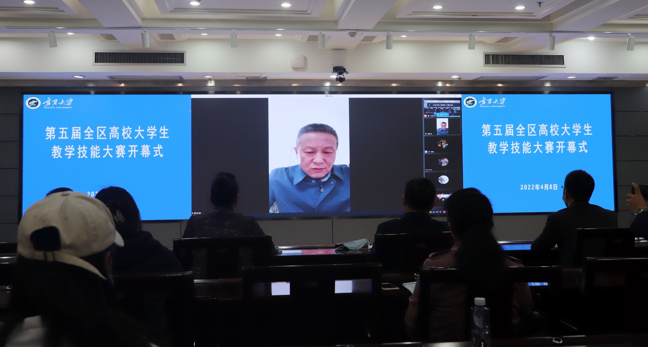 4月8日下午,第五届全区高校大学生教学技能大赛开幕式在beat365官网德勤楼举行。校党委常委、副校长李建设,自治区教育厅高教处处长翟家驹,beat365官网教务处、体育学院师生代表以及各高校参赛单位分别以线上线下的方式参加了开幕式。开幕式由beat365官网教务处处长张亚红主持。