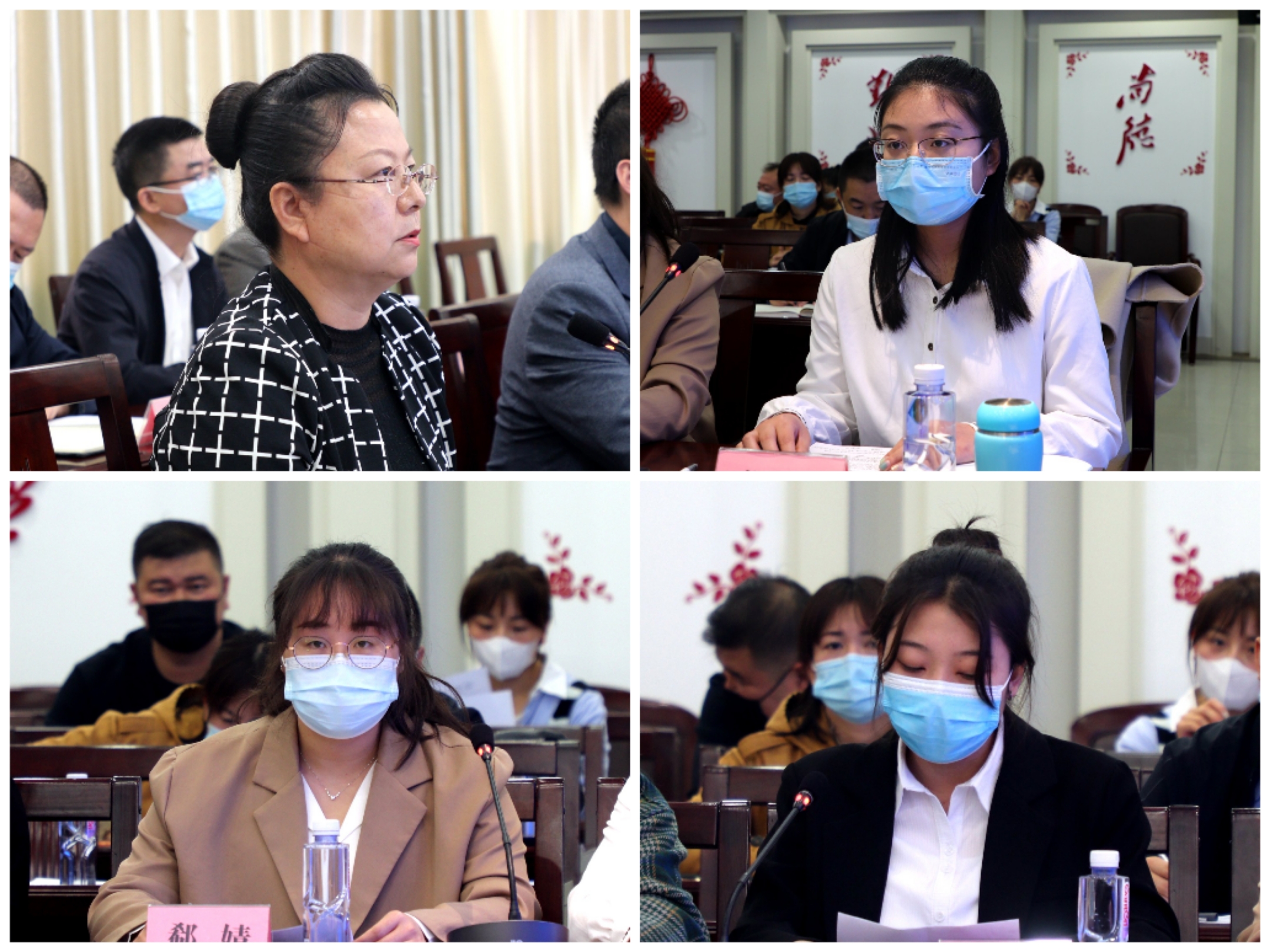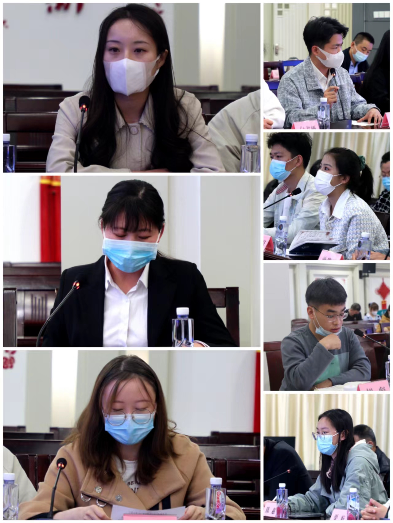 保研学生代表、马克思主义学院薛可可,考博学生代表、化学化工学院郗婧,学霸宿舍代表、生态环境学院文萃校区5号楼422宿舍陈艺雯结合自身考研、考博经历,从科研兴趣培养、学业规划、院校专业选择、同学互帮互助等方面进行了交流。与会人员围绕自身未来发展规划以及在宿舍、班级、学院学风方面形成的好经验进行了讨论交流,并对学校的教学科研人才培养等方面提出了具体的意见和建议。