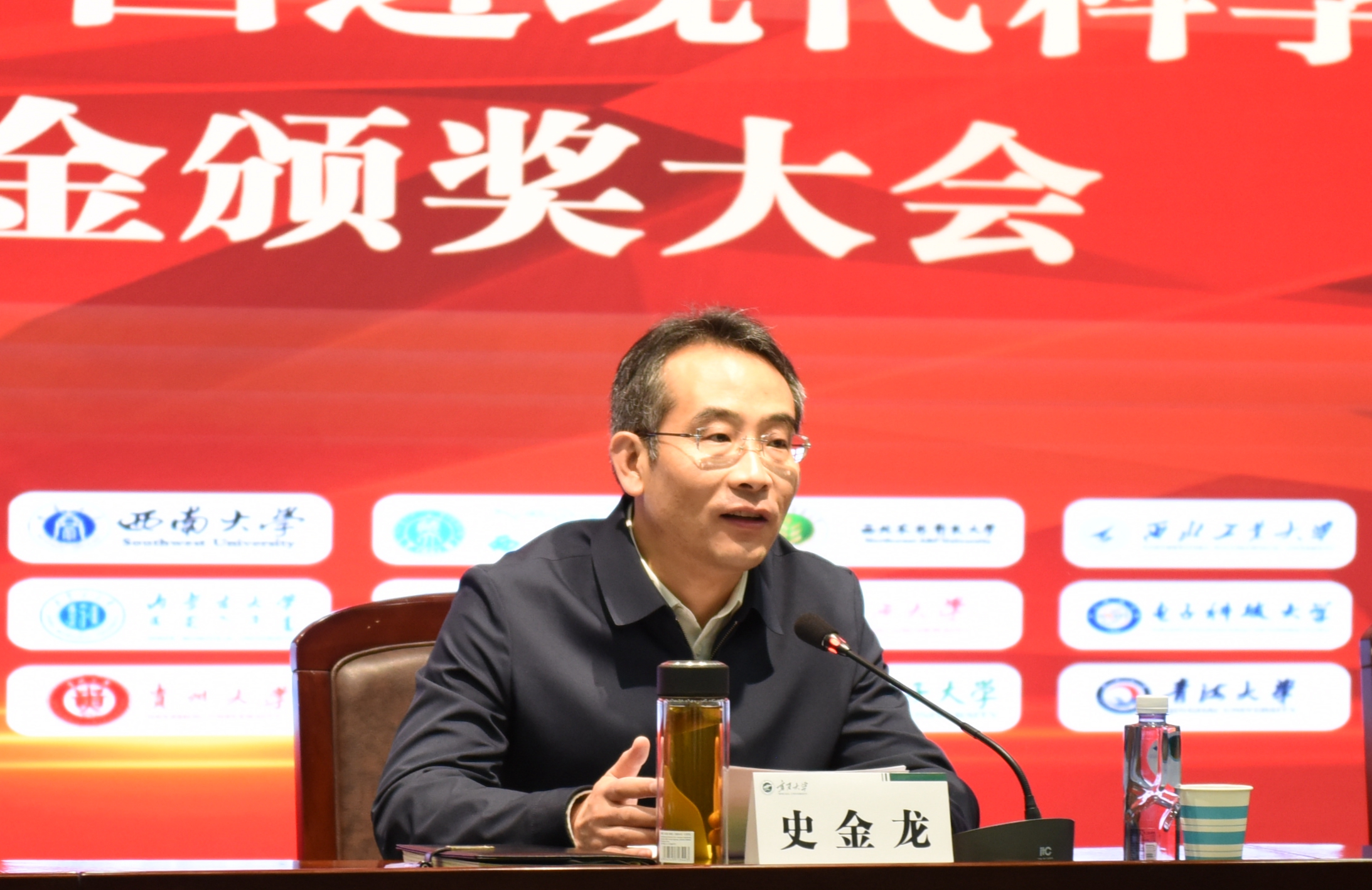 史金龙代表学校向本次获奖的同学表示热烈祝贺,向设立“感恩中国近现代科学家”奖学金的坚永公司董事会主席陈永庆先生表示感谢。他指出,要大力提倡和弘扬科学家精神,将科学家精神融入到学校育人工作当中,培养具有爱国、创新、求实、协同、奉献精神的新时代新青年。他希望同学们学会把感恩之情转化为强大的学习成才动力,全身心地投入到学习实践中,在学校“双一流”建设发展的快车道上,围绕国家和自治区重大战略需求,以创新驱动为动力,积极投入专业知识学习、创新创业能力提升、校园文化建设、学生志愿实践等领域,充分展示beat365官网大学生知恩图报、自强不息、奉献社会的精神风貌。