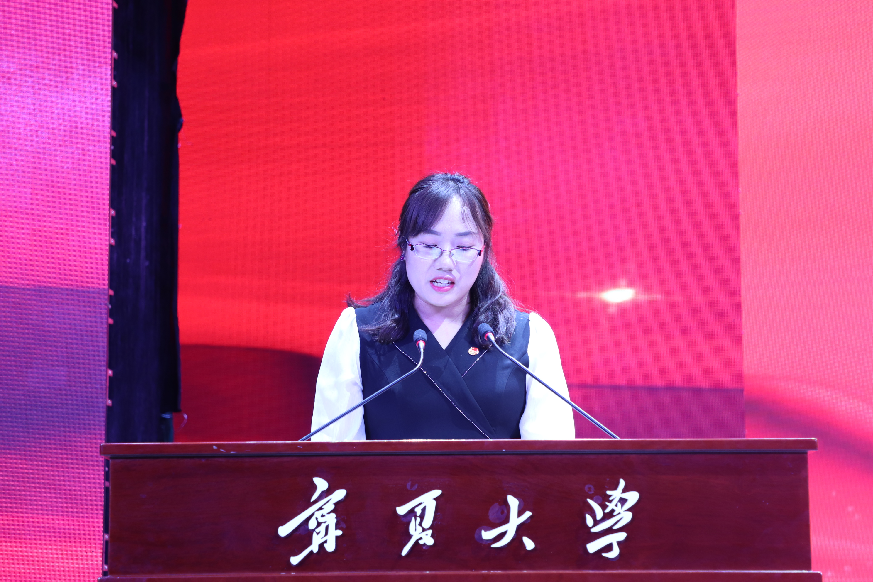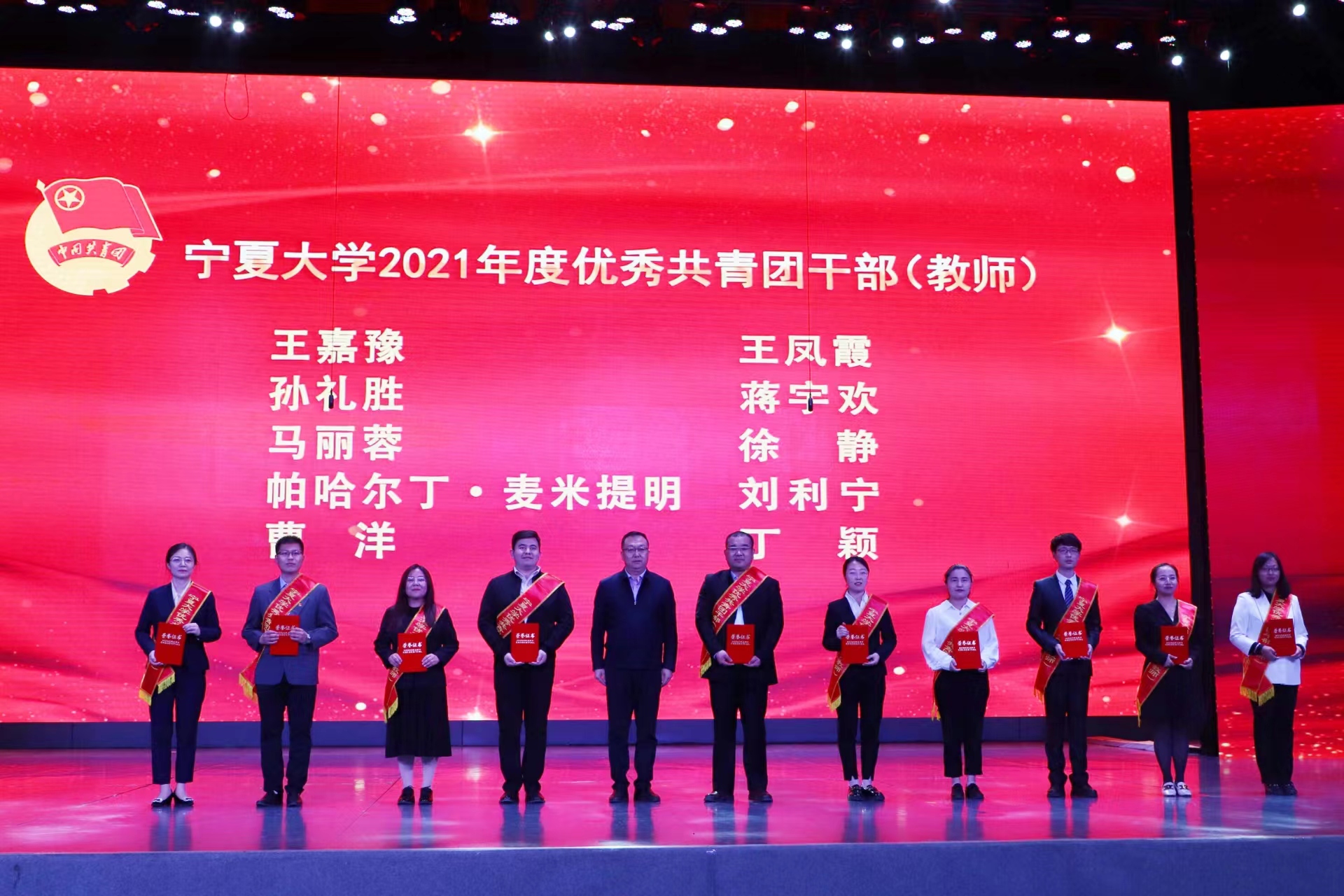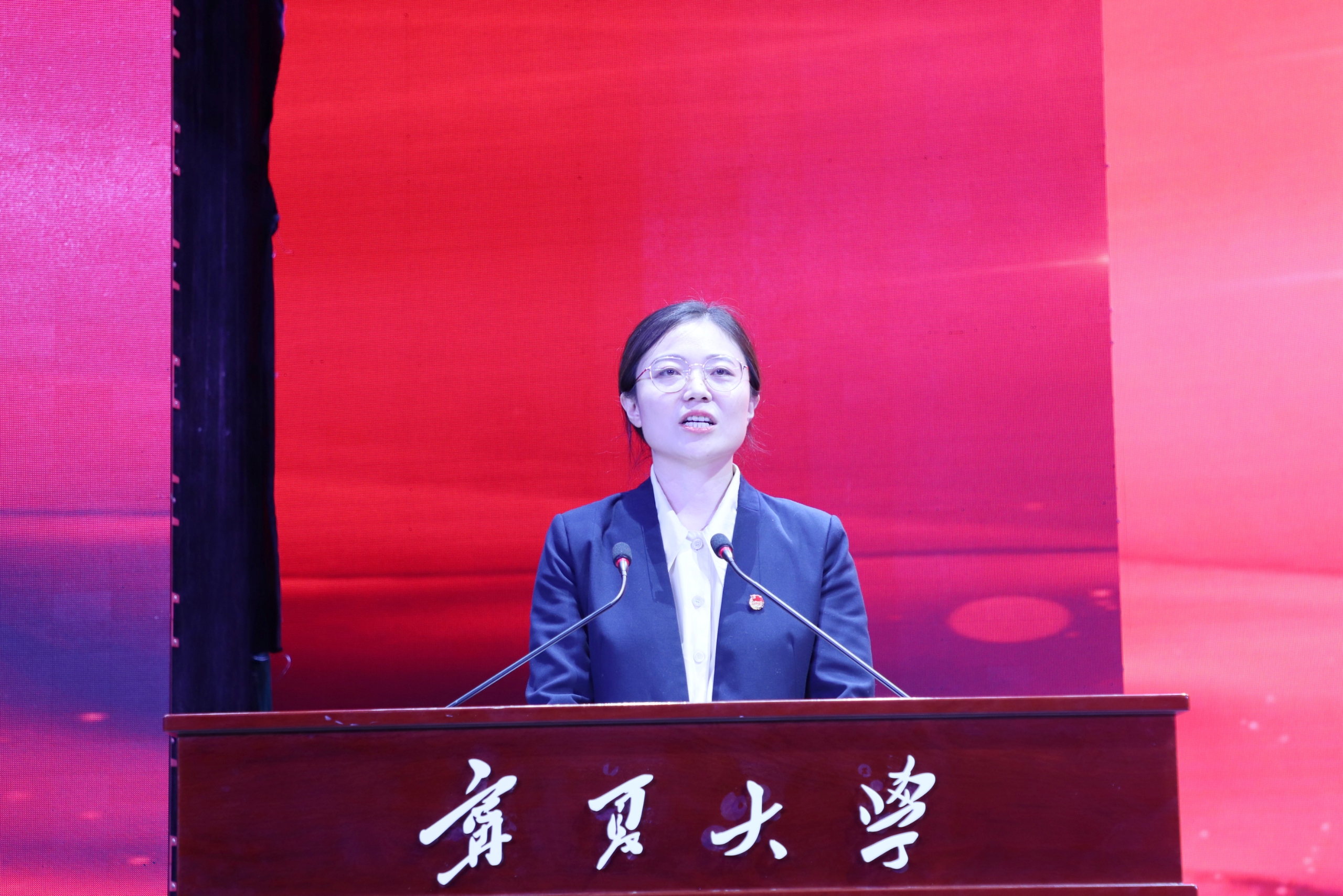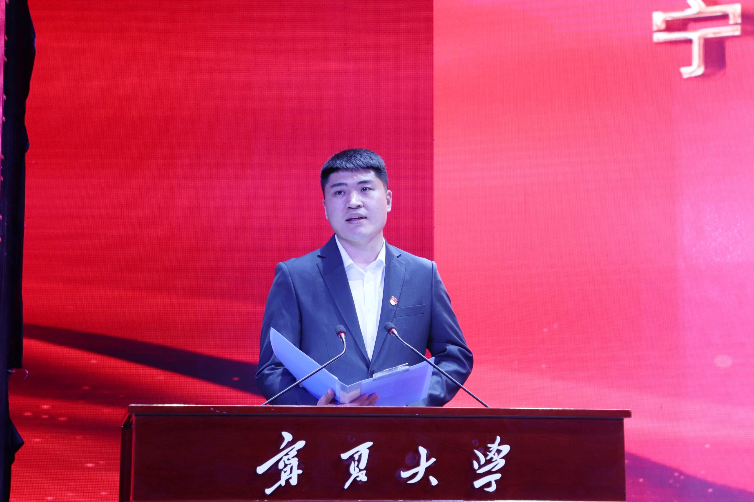 “两红两优”先进集体代表、土木与水利工程学院团委书记王娜,优秀共青团干部(教师)代表、法学院团委书记王嘉豫,全国优秀共青团员、中国大学生自强之星、宁夏青年五四奖章获得者、生命科学学院2020级生物学专业博士研究生李振凯同学先后代表获奖集体和个人作了发言。
