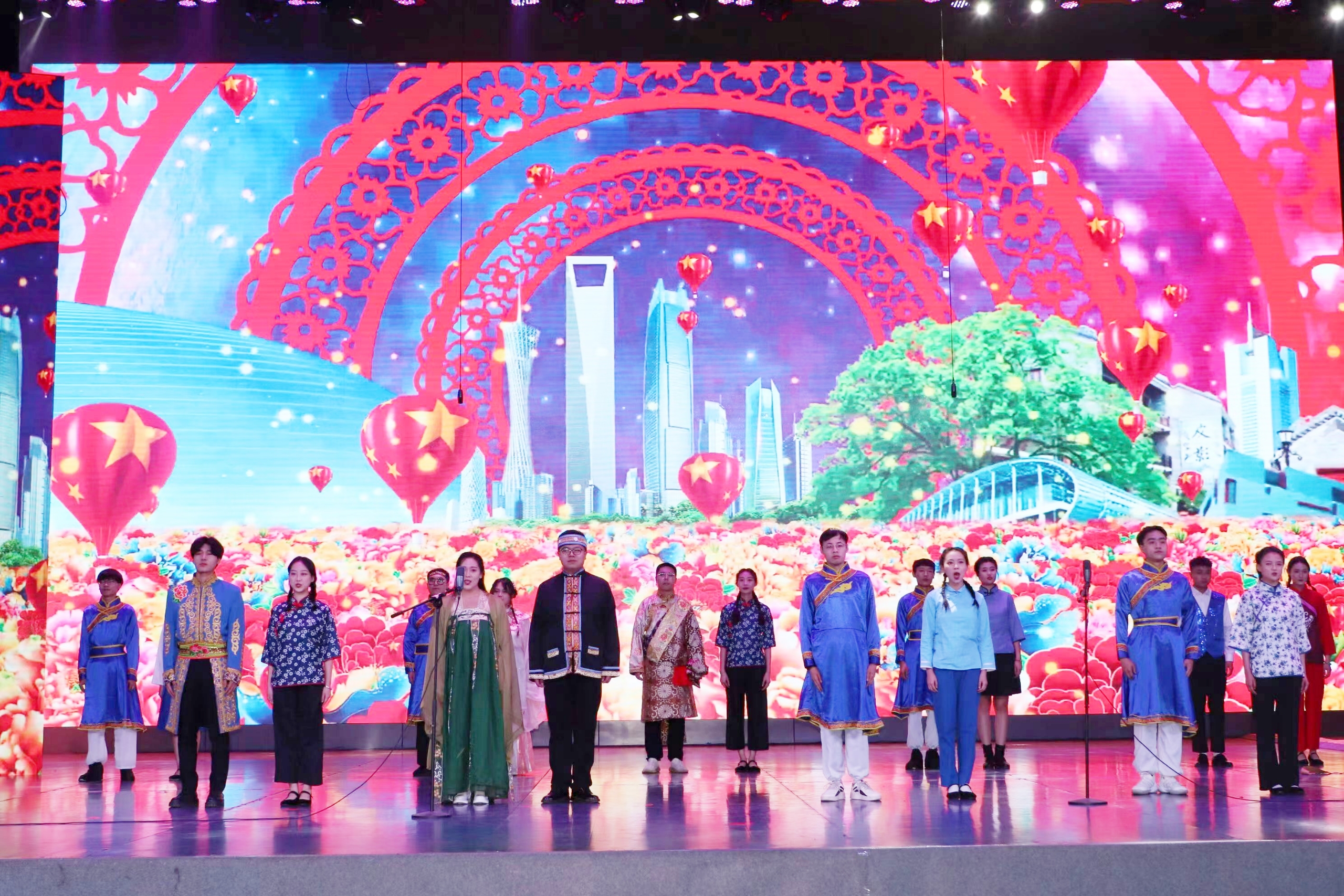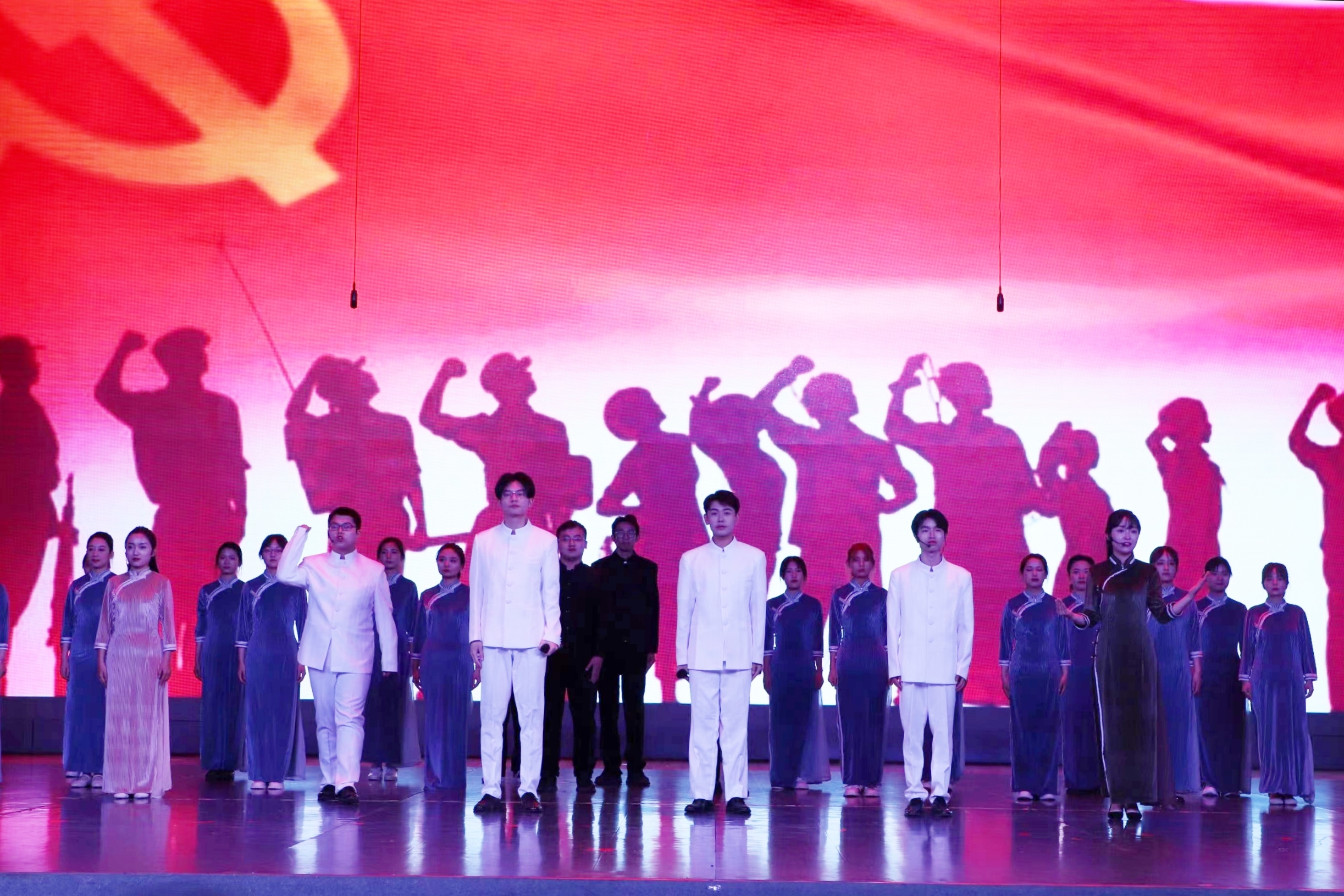 舞蹈《觉醒年代》纪念新文化运动和五四运动中涌现出的有志之士,鼓舞青年学生振奋精神、勇于追求真理;情景剧《别样青春》介绍了为中华民族解放而牺牲的英雄事迹,呼吁青年学生铭记历史、缅怀先烈;二重唱《烽火狼牙山》赞扬了革命英雄坚贞不屈的民族气节,激发了青年学生强烈的爱国主义情怀;歌曲《爱我中华》唱出了中华民族团结一家亲的温馨、和睦;诗歌《中国青年》展现了青年一代朝气蓬勃、奋发向上的精神风貌;舞蹈《爱》阐释了青年充满青春活力、热爱生活的态度;合唱《少年—时代感》唱出了青年一代的青春梦想在时代中绽放……演出在歌伴舞《青春畅想》中圆满落幕。